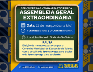 SerToledo convoca servidores para Assembleia Geral Extraordinária